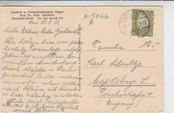 Neustadt-Wied bei Asbach Gasthof Nagel 1932