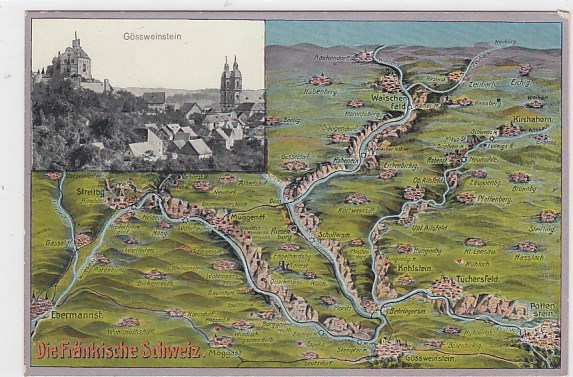 Gössweinstein Ebermannstadt Waischenfeld Tüchersfeld AK als Landkarte vor 1945