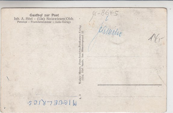 Steinwiesen im Frankenwald Gasthof zur Post ca 1935