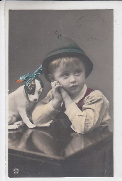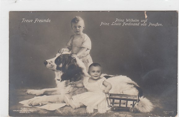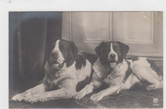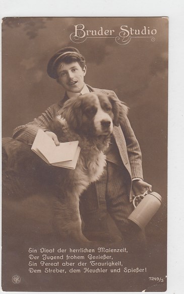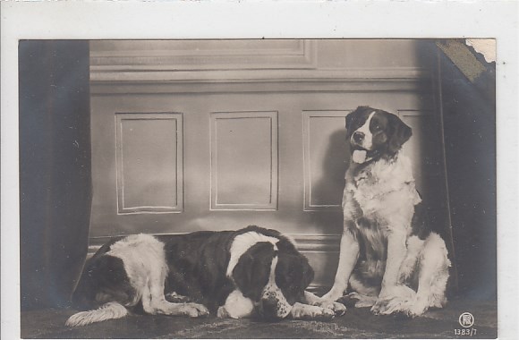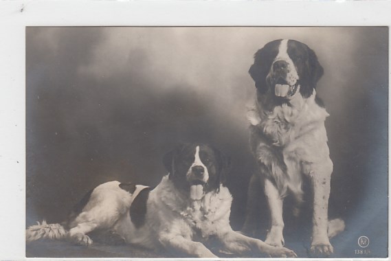 Tiere Hunde Foto Karte Bernhardiner und Studenten ca 1910