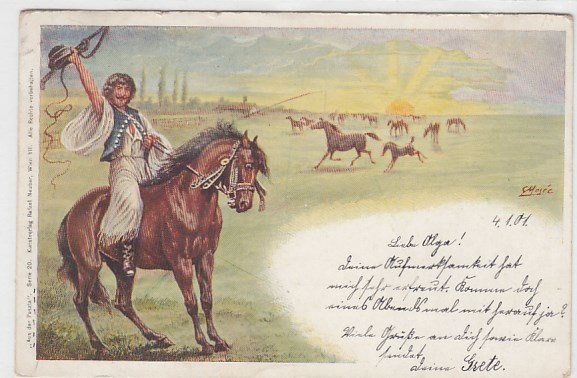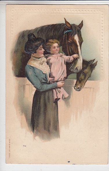 Pferde und Frauen Ansichtskarte Prägekarte von 1906