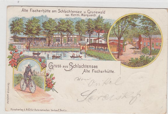 Berlin Steglitz Schlachtensee und Grunewald Fischerhütte Litho Ansichtskarte von 1897