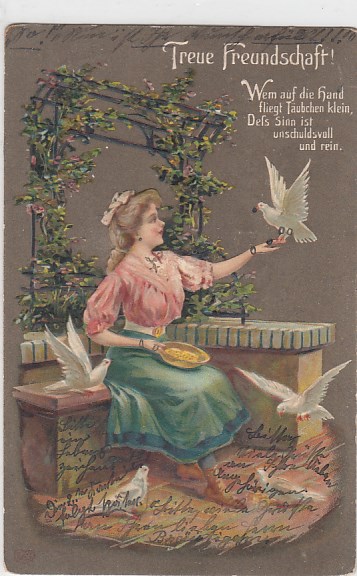 Glückwunsch zum Geburtstag Frauen Vögel Prägekarte 1910