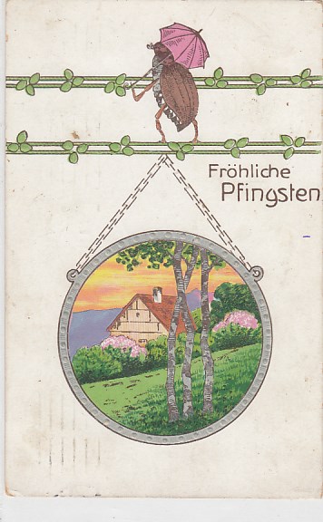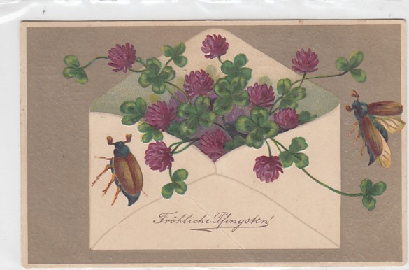 Glückwunsch Fröhliche Pfingsten Maikäfer Prägekarte 1910