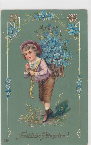 Glückwunsch Fröhliche Pfingsten Kinder Blumen 1909