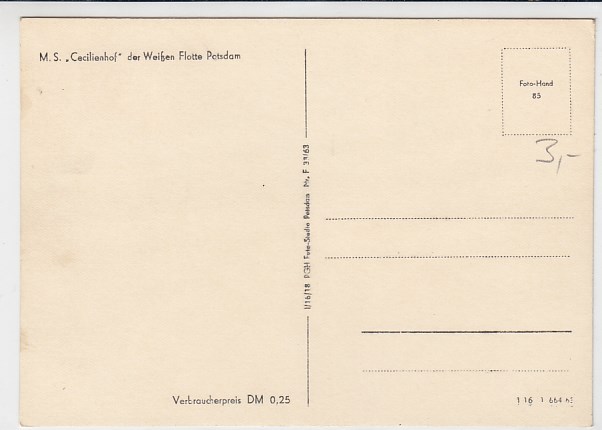 Motorschiff Cecilienhof Weiße Flotte Potsdam 1965