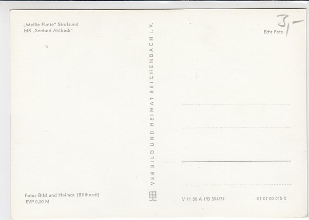Ostsee Motorschiff Ahlbeck Weiße Flotte Stralsund 1974