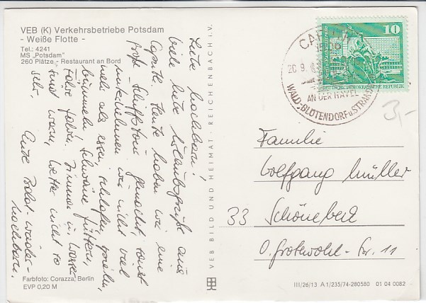 Motorschiff Strandbad Ferch Weiße Flotte Potsdam 1990