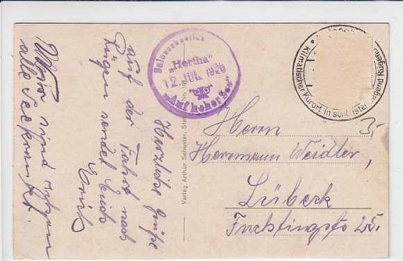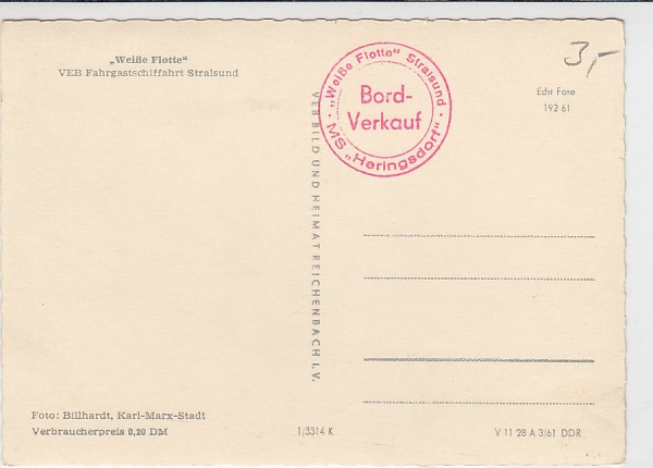 Ostsee Motorschiff Weiße Flotte Stralsund mit Schiffsstempel Heringsdorf 1961