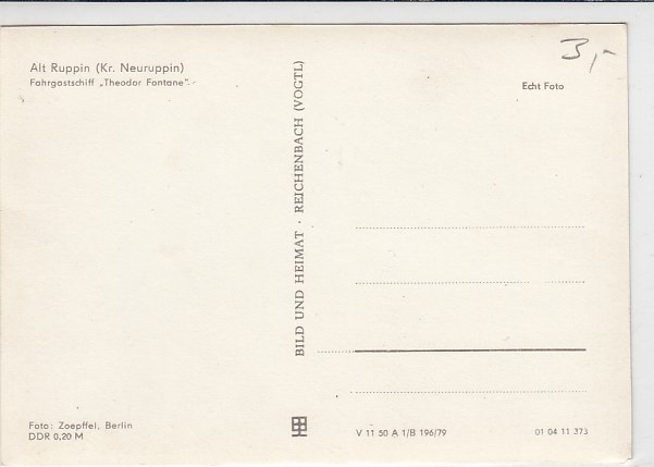 Motorschiff Theodor Fontane Alt Ruppin Kreis Neuruppin 1979