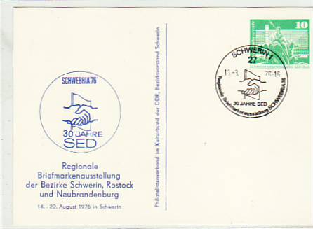 Schwerin Briefmarkenausstellung Postkarte 1976