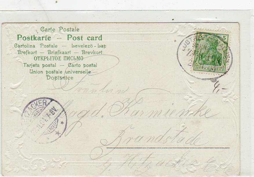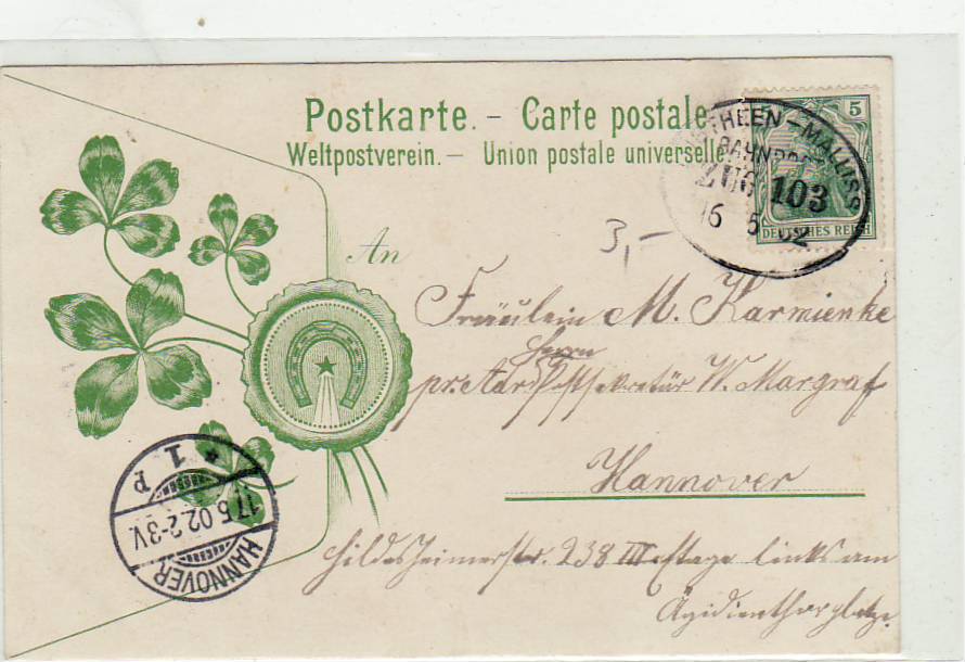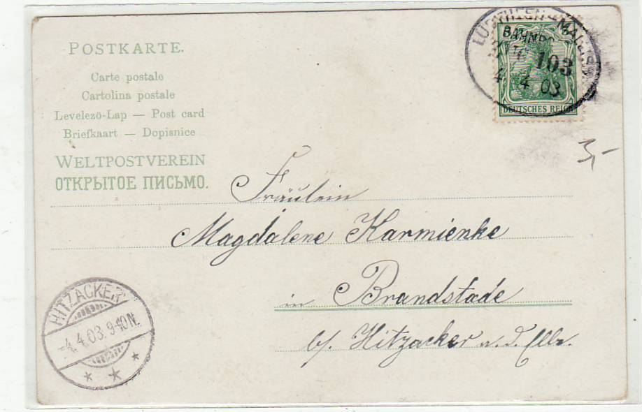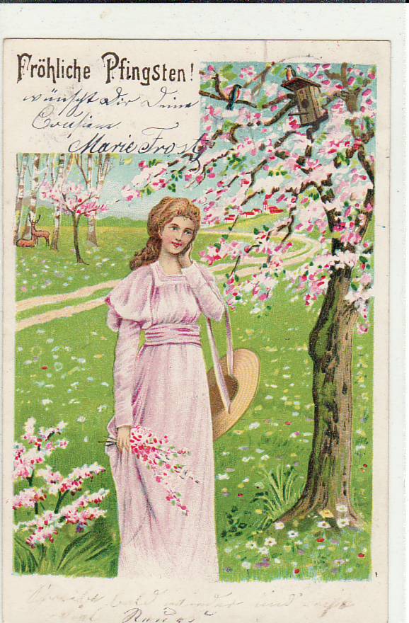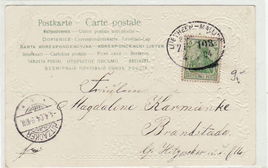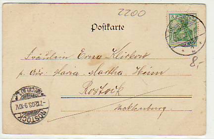 Bahnpoststempel Lübtheen-Malliss 1903 auf Ansichtskarte Glückwunsch Pfingsten 1902