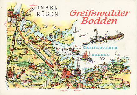 Greifswald Stralsund Grimmen Wieck AK als Landkarte 1977