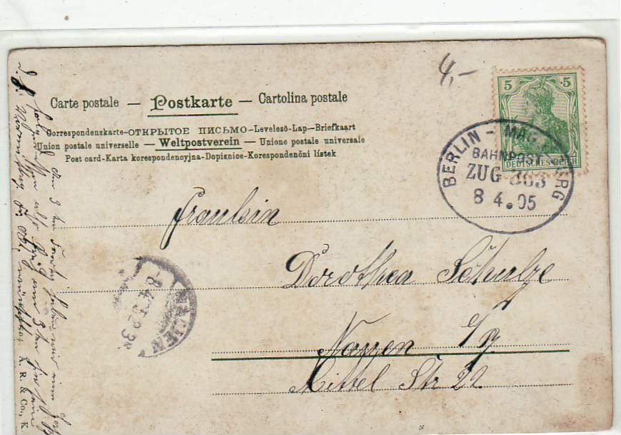 Bahnpoststempel Berlin-Magdeburg auf Ansichtskarte Liebe