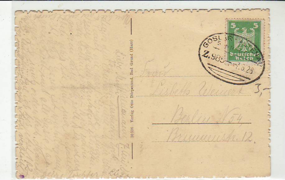 Bahnpoststempel Goslar-Altenau auf Ansichtskarte Bad Grund Harz 1926