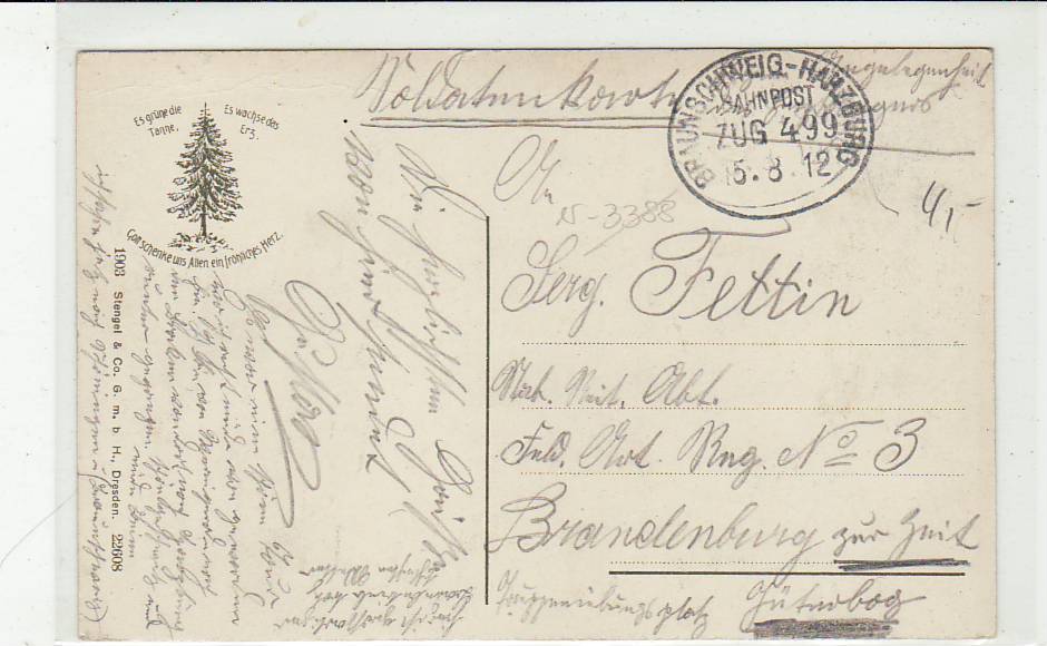 Bahnpoststempel Braunschweig-Harzburg auf Ansichtskarte Bad Harzburg 1912