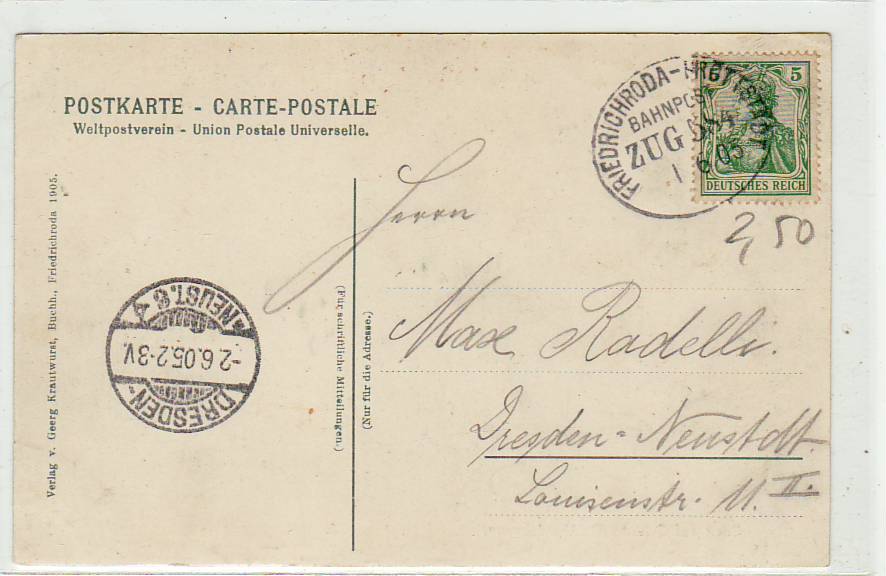 Bahnpoststempel Friedrichroda auf Ansichtskarte Reinhardsbrunn 1905