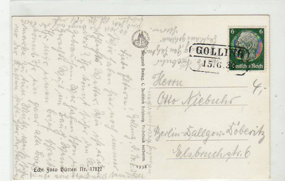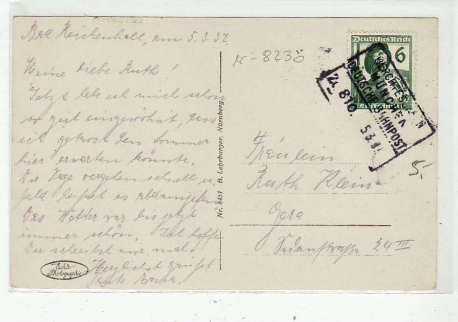 Bahnpoststempel Berchtesgaden-München auf Ansichtskarte Bad Reichenhall 1937