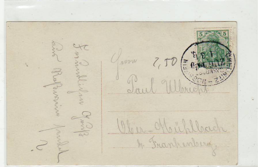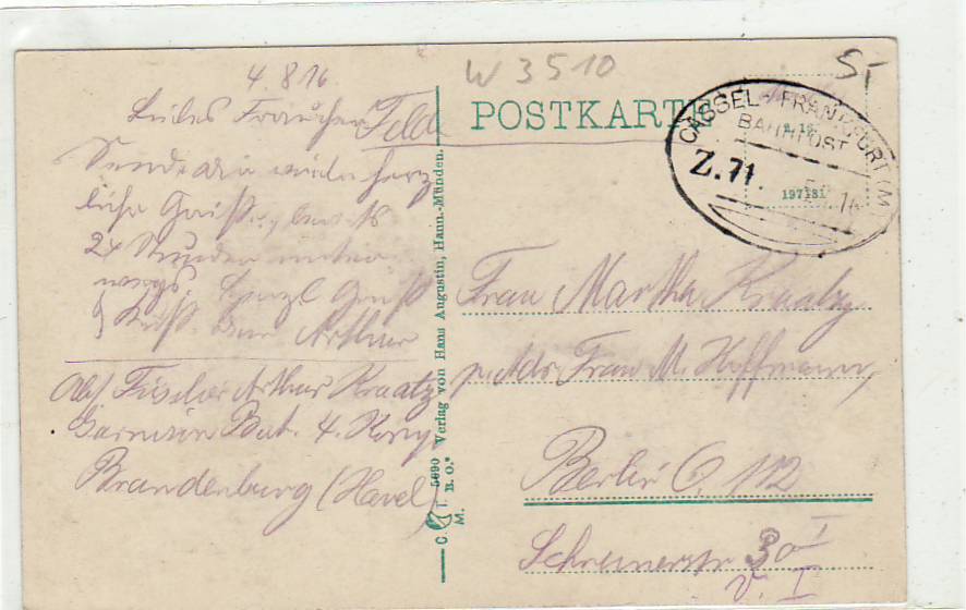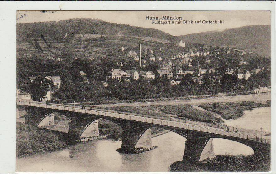 Bahnpoststempel Kassel-Frankfurt am Main auf Ansichtskarte Hann.-Münden Fulda 1916