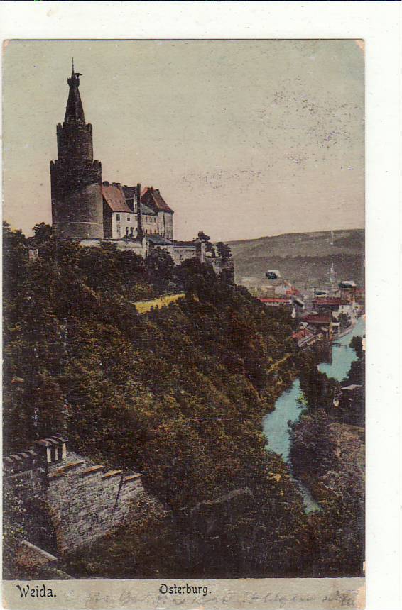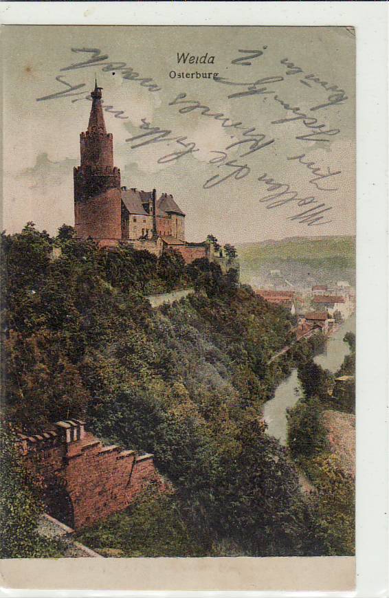 Bahnpoststempel Werdau auf Ansichtskarte Weida Osterburg