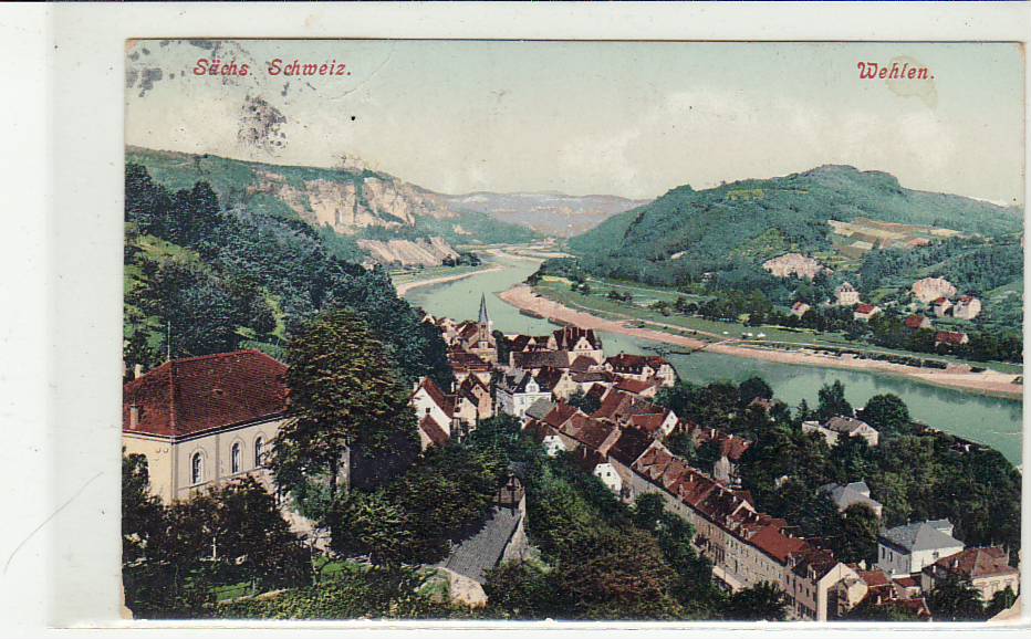 Bahnpoststempel Bresden-Bodenbach auf Ansichtskarte Wehlen