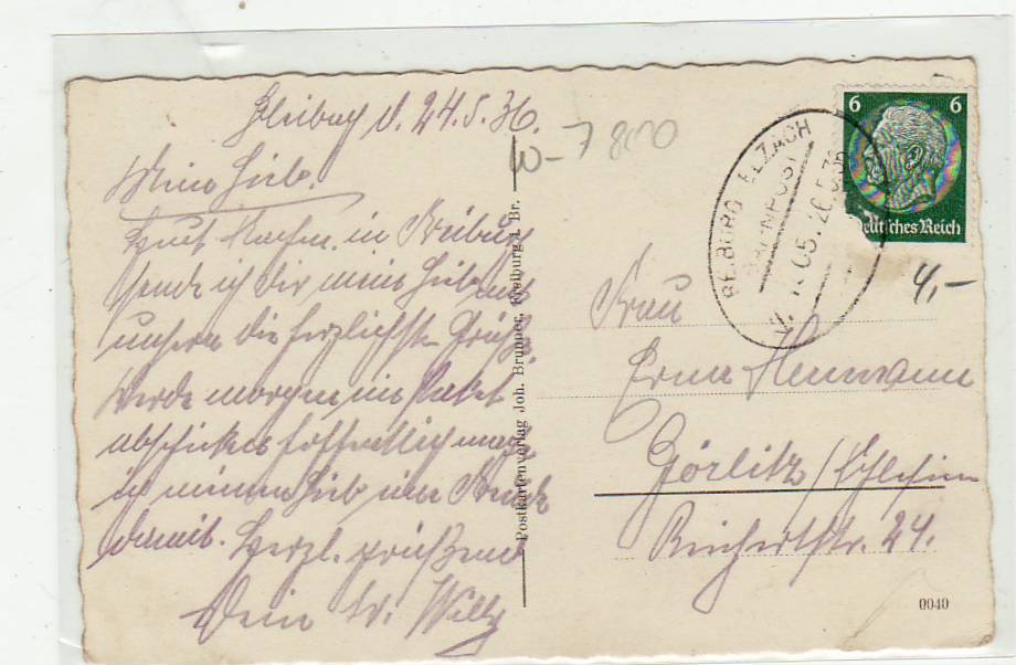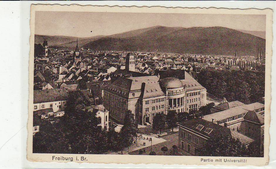 Bahnpoststempel Freiburg auf Ansichtskarte Freiburg Breisgau 1936