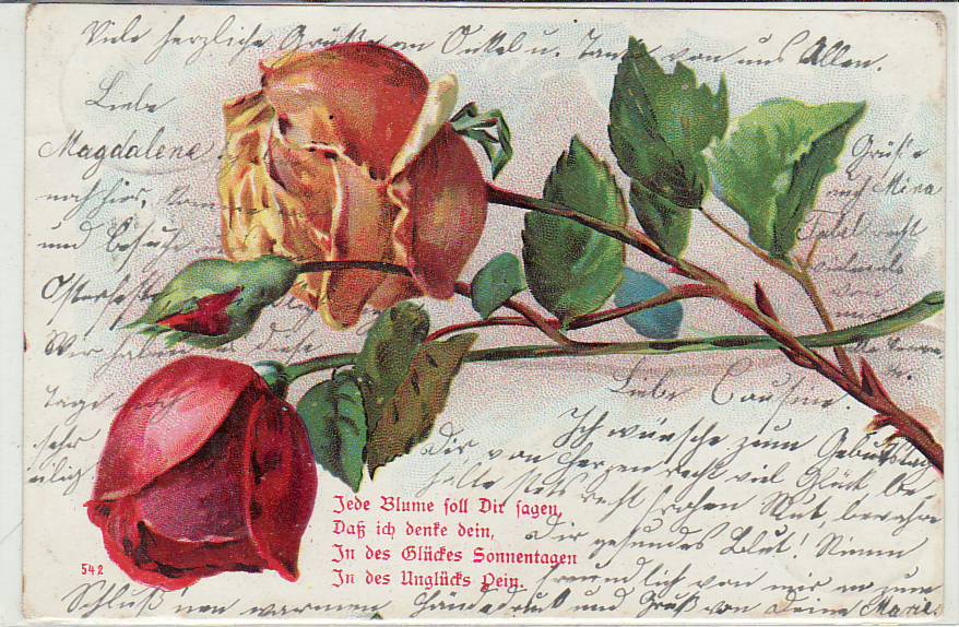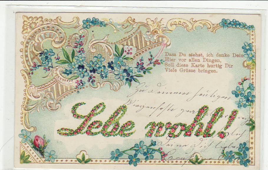 Bahnpoststempel Lübtheen-Malliss 1903 auf Ansichtskarte Blumen