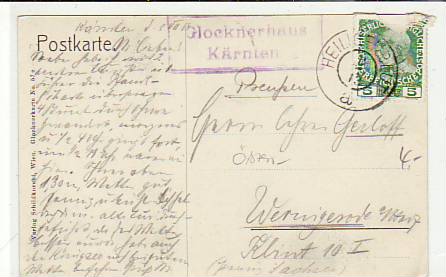 Franz Josefshaus Berghütte Grossglockner Stempel Heiligenblut 1913 Österreich