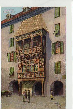 Innsbruck Österreich Goldens Dach Künstlerkarte Anton Hofer ca 1910
