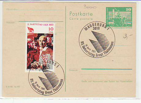 59782 [3010o20] |  | Magdeburg Sonderstempel Postkarte Belege Thälmann Briefmarke | 3.00EUR 1.50EUR | In den Warenkorb |