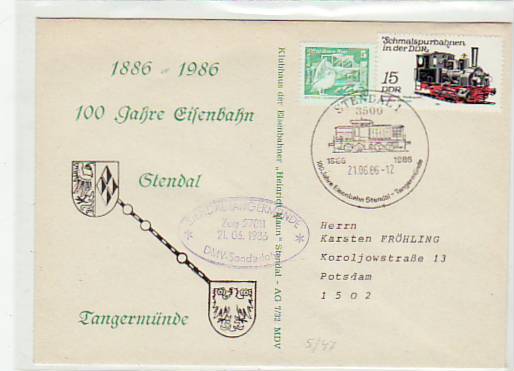 59711 [3504o232] |  | Stendal - Tangermünde Belege Briefe Eisenbahn Sonderstempel 1986 | 3.00EUR 1.50EUR | In den Warenkorb |