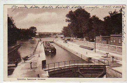 Berlin Spandau Schleuse Frachtschiffe 1915
