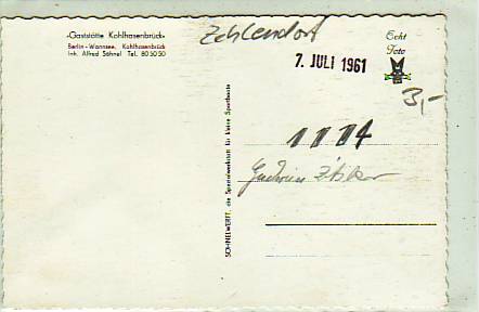 Berlin Zehlendorf Gasthaus Kohlhasenbrück 1961
