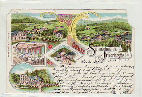 Friedrichsthal Spindelmühle Litho 1901 Riesengebirge