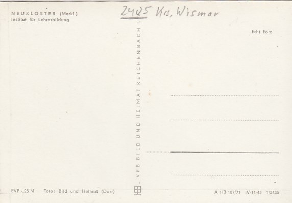 Neukloster in Mecklenburg Institut für Lehrerbildung 1971