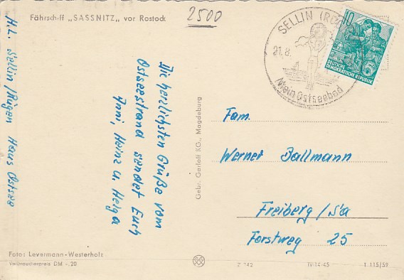 Rostock Fährschiff Sassnitz 1959