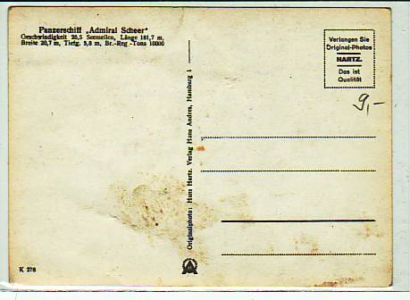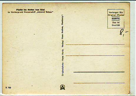 Marine Kriegsschiffe 2.WK Panzerschiff Admiral Scheer in Kiel