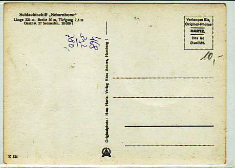 Marine Kriegsschiffe 2.WK Schlachtschiff Scharnhorst