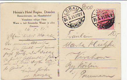 Dresden Hotel Regina am Bahnhof 1921