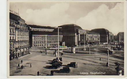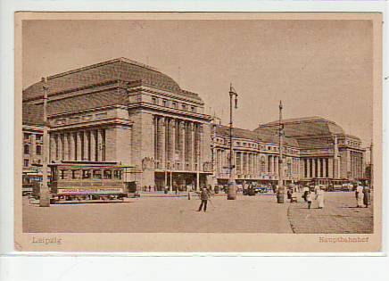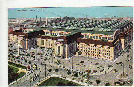 Leipzig Bahnhof und Strassenbahn ca 1925