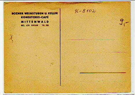 Mittenwald Bozner Weinstube, Cafe ca 1940