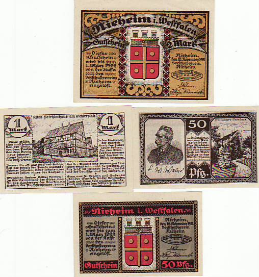 Nieheim Westfalen 3 Scheine Notgeld 1921