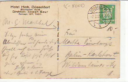 63618 [4000w591] |  | Düsseldorf Hotel Heck Blumenstraße 16-18 von 1925 | 11.00EUR 8.25EUR | In den Warenkorb |