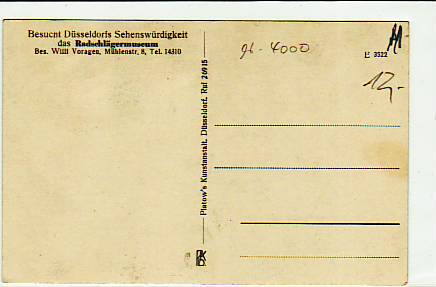 63616 [4000w593] |  | Düsseldorf Radschlägermuseum ca 1930 | 13.00EUR 9.75EUR | In den Warenkorb |