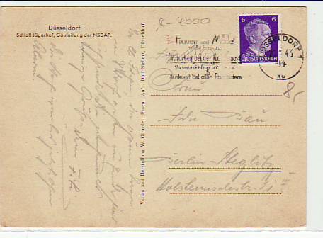 63615 [4000w595] |  | Düsseldorf Schloss Jägerhof Gauleitung NSDAP 1943 | 9.00EUR 6.75EUR | In den Warenkorb |