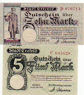 63602 [4150wno4] |  | Krefeld 2 Scheine Notgeld 1918 | 11.00EUR 8.25EUR | In den Warenkorb |