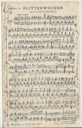 63698 [44832] |  | Liedkarten Musik Hochzeit Flitterwochen Honemoon-Marsch 1901 | 3.00EUR 1.50EUR | In den Warenkorb |