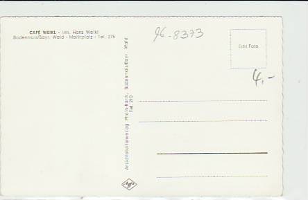 63636 [8373w28] |  | Bodenmais Cafe Weikl ca 1960 | 4.00EUR 2.00EUR | In den Warenkorb |