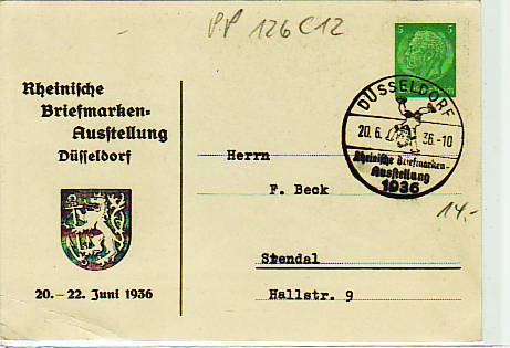 63694 [m65457] |  | Privat-Ganzsache Briefmarken Ausstellung Düsseldorf PP126C12 | 13.00EUR 9.75EUR | In den Warenkorb |