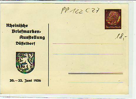 63692 [m65459] |  | Privat-Ganzsache Briefmarken Ausstellung Düsseldorf PP122C27 | 19.00EUR 14.25EUR | In den Warenkorb |